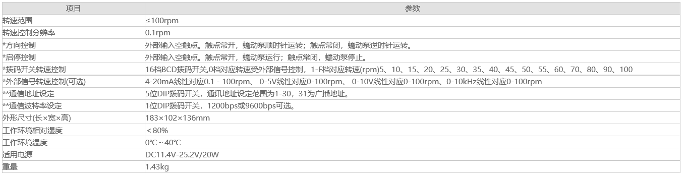 說明:*項目為撥碼開關結(jié)合外部信號控制方式所特有