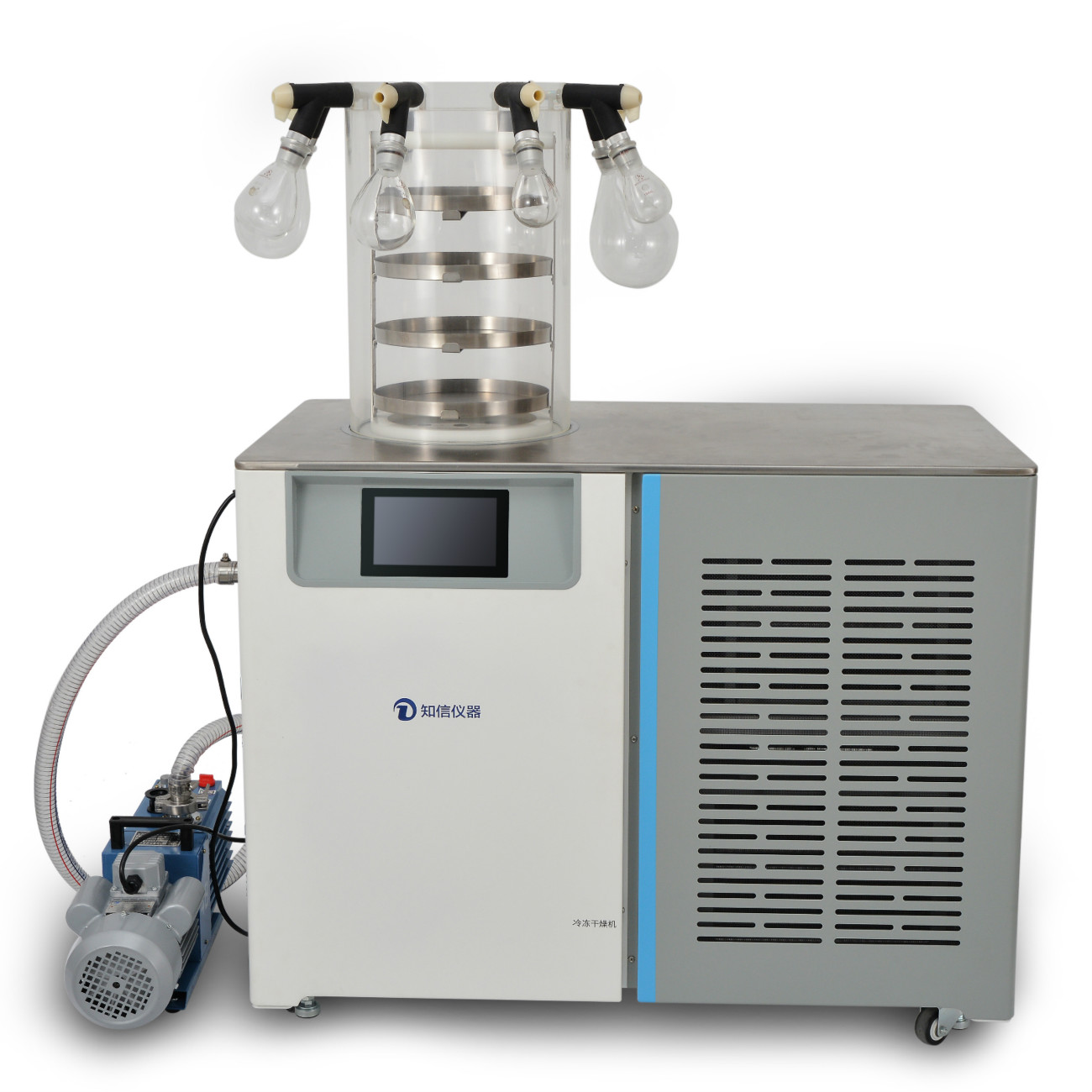 臺(tái)面為不銹鋼,耐腐蝕,采用無色透明干燥室,采用亞克力材質(zhì),樣品預(yù)凍功能,無需低溫冰箱。