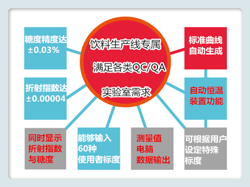 | 分辨率 | 折射率(nD):0.00001 Brix:0.01% 溫度:0.01℃ |