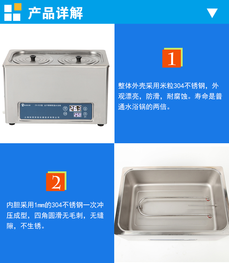 恒溫水浴鍋廣泛用于干燥、濃縮、蒸餾、浸漬化學(xué)試劑及生物制品,可生物遺傳、病毒、水產(chǎn)、環(huán)保、醫(yī)藥、衛(wèi)生、生化試驗(yàn)室、科研教學(xué)的必備工具。