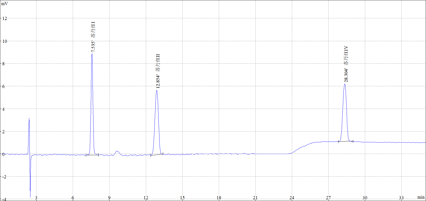 2.5 μg/mL 蘇丹紅I、蘇丹紅II、蘇丹紅IV混合標準樣品