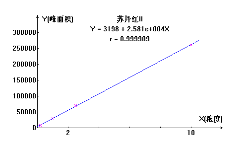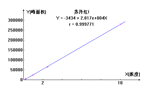 蘇丹紅I號工作曲線見下圖,線性相關系數(shù):0.9997